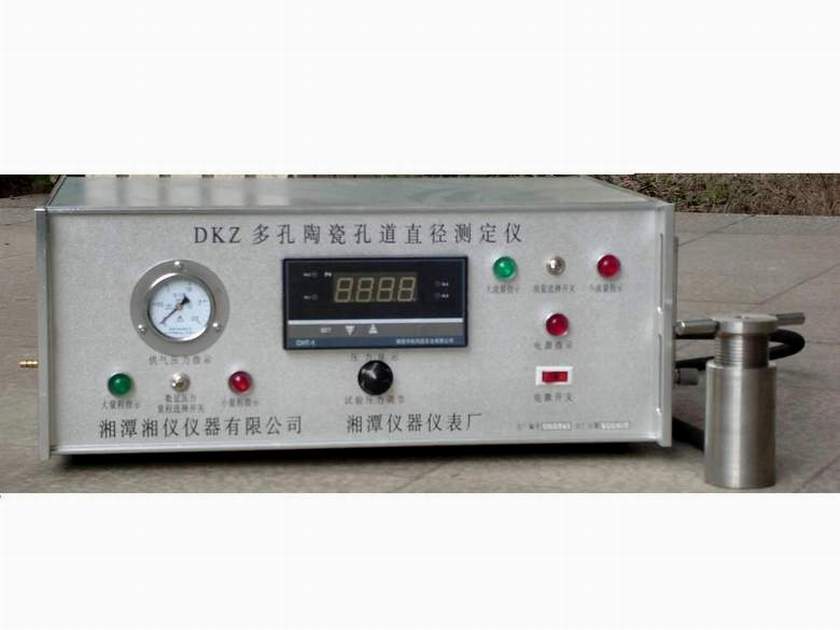 DKZ多孔陶瓷孔道直径测定仪适用于按GB/T1967-1996《多孔陶瓷孔道直径试验方法》测定多孔陶瓷毛细孔管道最大值。本仪器主要由供气瓶、电器控制箱及试样夹具三部分组成,采用精密低量程数字测压系统,精确测量试验压力值。试验用气体为压缩空气或氮气;试样夹具适用于截面为圆柱形的试样,夹具保证了在试验过程中气体只能从试样毛细孔中通过而不至于从试样边缘泄露。